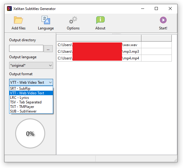 Load an audio or video file and get perfect subtitles with ease. Can also