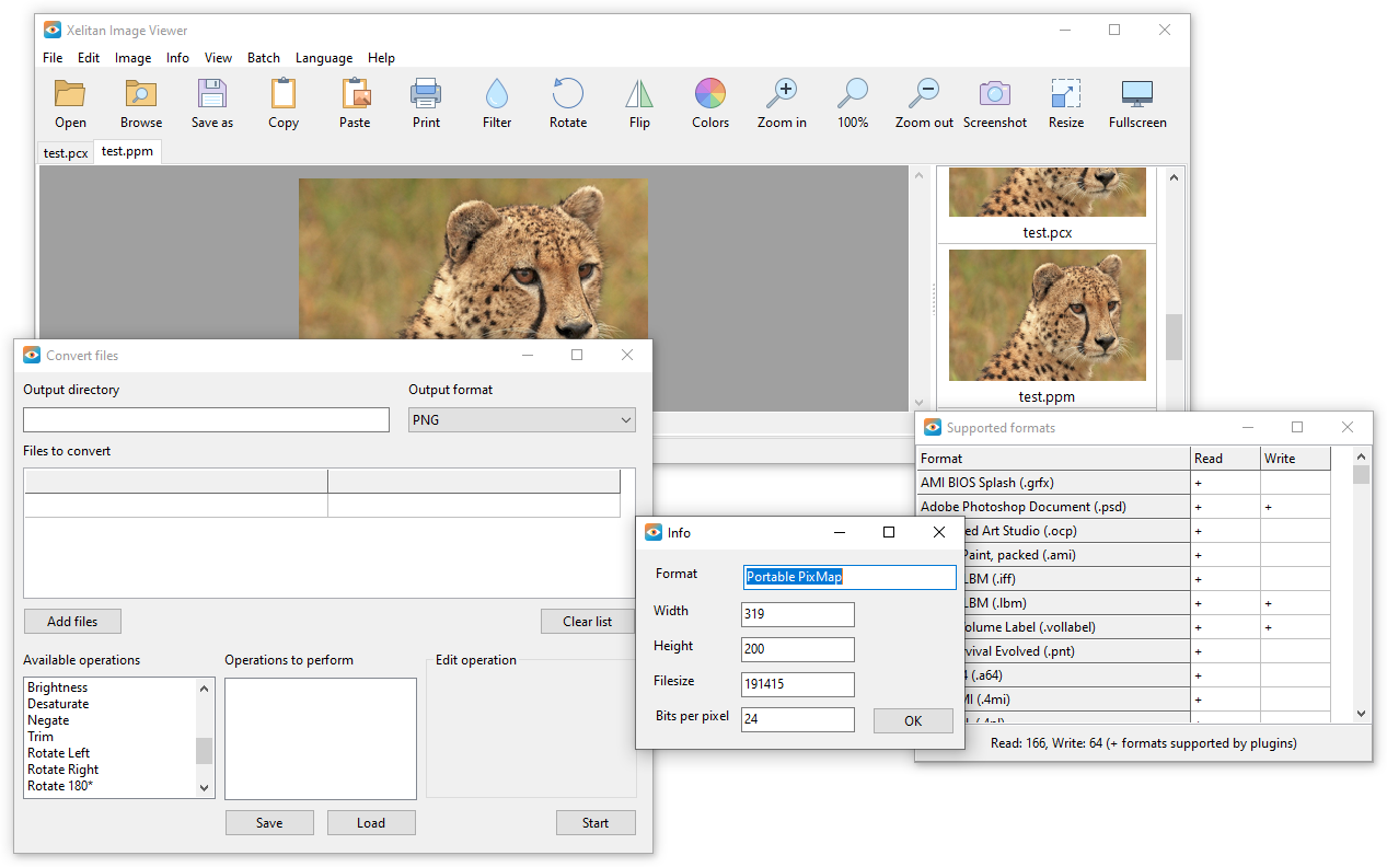 - reads over 500 image formats, including WEBP, JPEG, GIF, PNG, AVIF, TGA, PSD, PDF